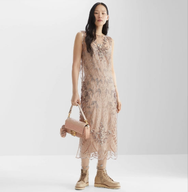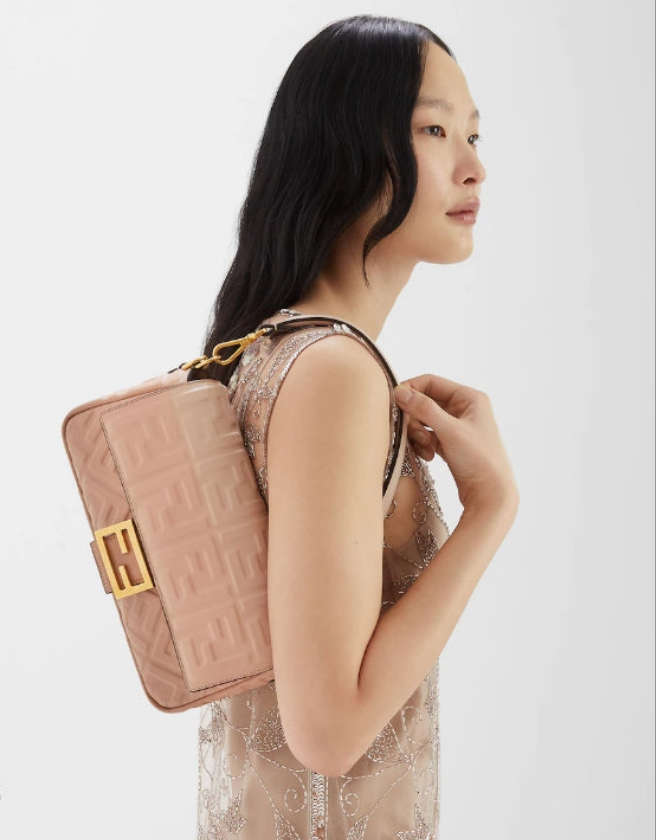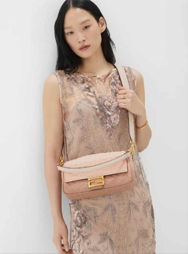 Fêndï Baguette Sac nappa rose effet dégradé