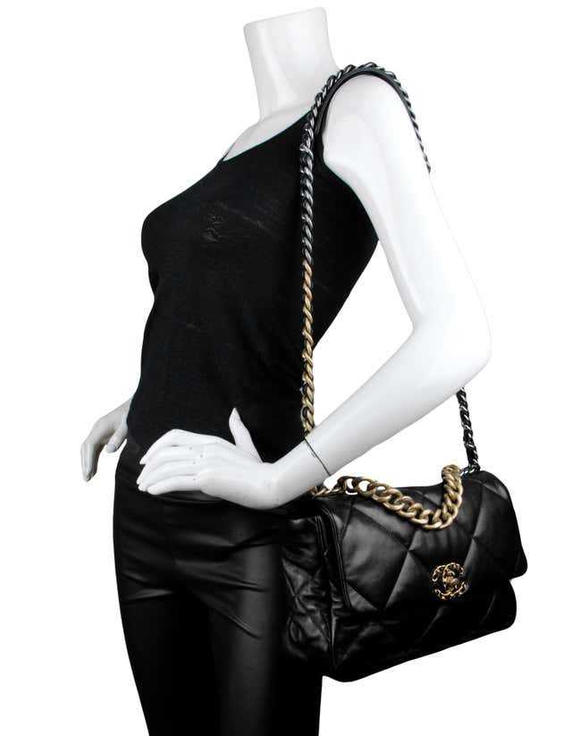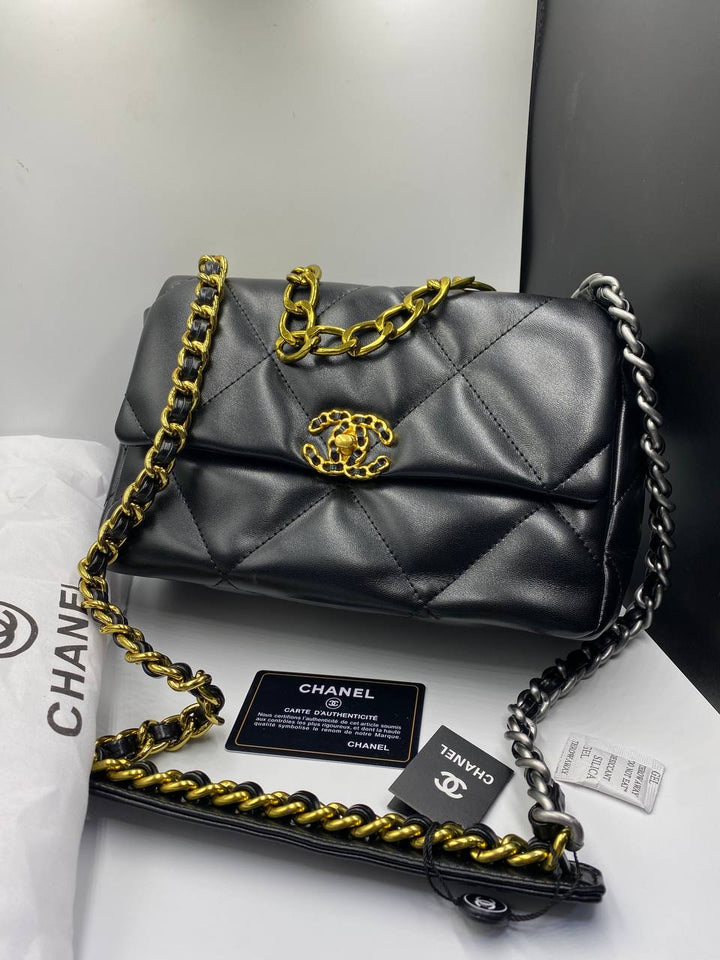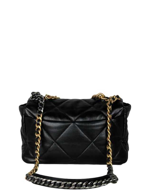 Ch@nel - Sac à rabat 19 de veau matelassé noir brillant