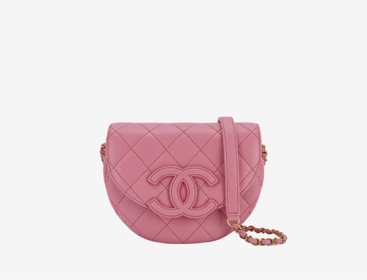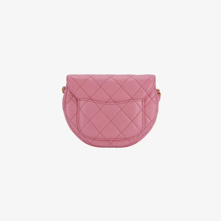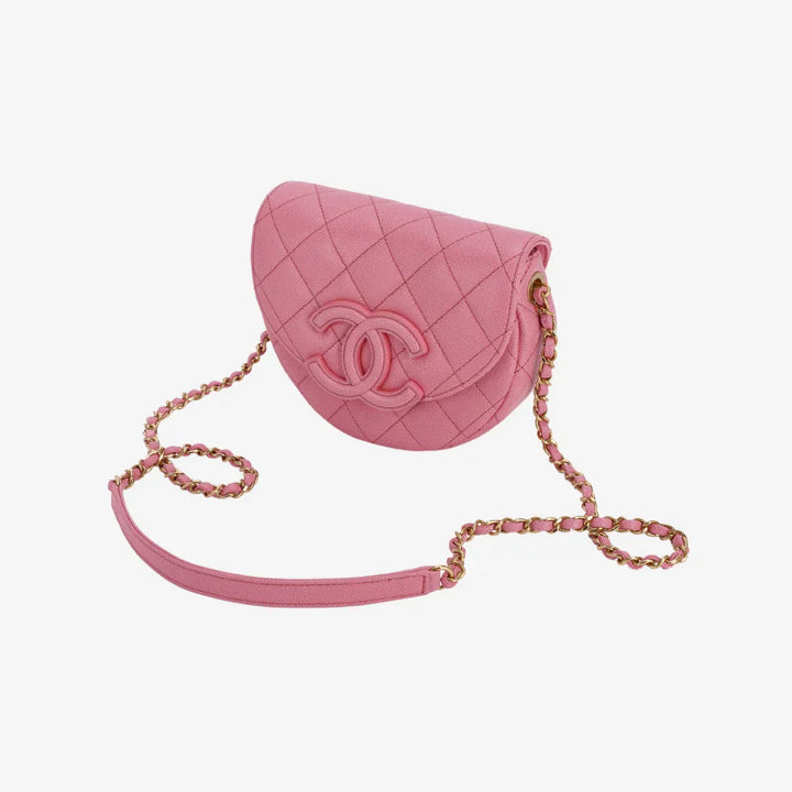 Chanel Mini Messenger Bag Cuir de veau grainé & doré Rose clair