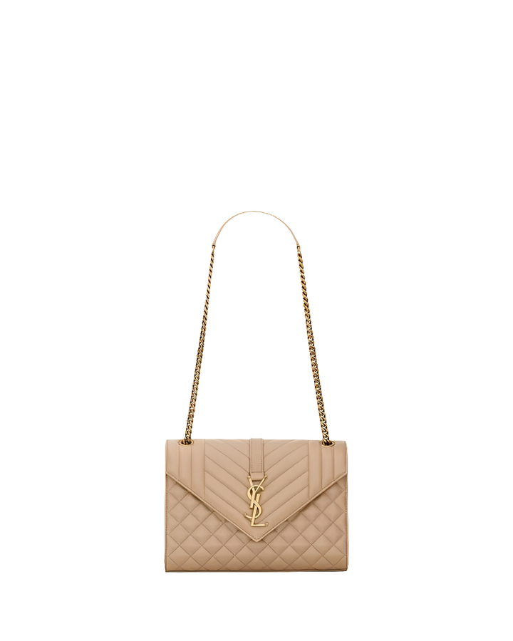 YSL ENVELOPE MEDIUM d’agneau MATELASSÉ DARK TOFFEE